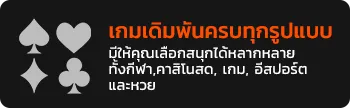 ความบันเทิงเหนือระดับ สัมผัสประสบการณ์พนันออนไลน์ที่ครบครัน ไม่ว่าจะเป็นคาสิโน สล็อต กีฬา เกมไพ่ ครบจบในเว็บเดียว พร้อมระบบฝาก-ถอนอัตโนมัติตลอด 24 ชั่วโมง